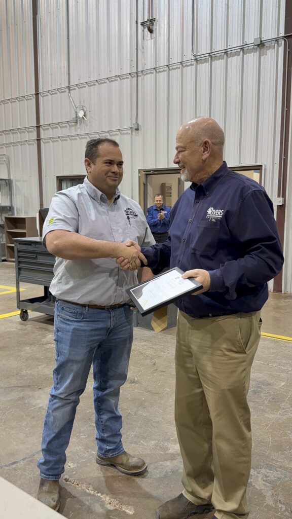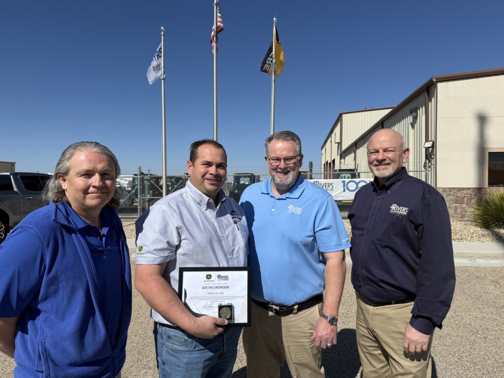 Product Support Manager Justin Crowder from Hobbs received a 4Rivers Challenge Coin on Wednesday, February 11 in the Core Value category of “Innovation.” CEO John Shearer and General Manager Danny Bratton surprised Justin with the award during a branch luncheon.